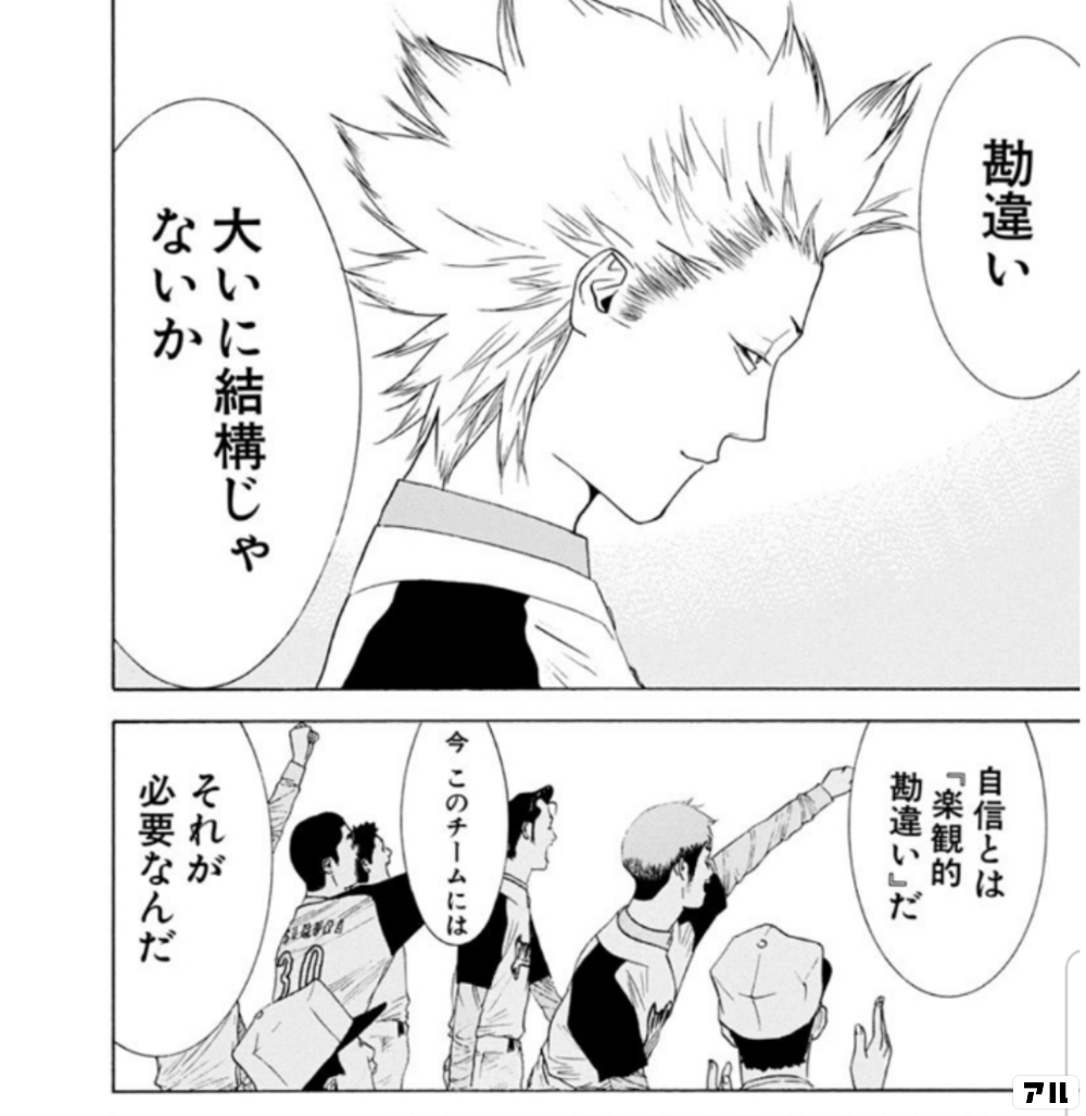 勘違い 大いに結構じゃないか 自信とは 楽観的勘違い だ 今 このチームには それが必要なんだ One Outs アル